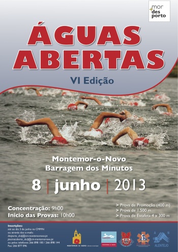 A Câmara Municipal de Montemor-o-Novo vai realizar no dia 8 de Junho de 2013 (sábado), a 6.ª edição da prova de Águas Abertas na Barragem dos Minutos.