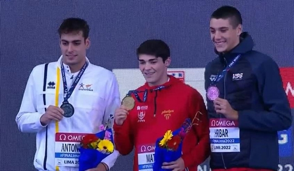 Mundial Juniores Lima Peru 2022 - Diogo Ribeiro OURO nos 50 livres. O português sagrou-se hoje campeão mundial dos 50 livres somando o seu segundo título mundial depois do ouro nos 100 mariposa.