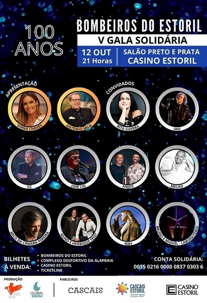 O Salão Preto e Prata do Casino Estoril recebe, no próximo dia 12 de Outubro, às 21h00, a V Gala Solidária dos Bombeiros do Estoril. Com apresentação de Diana Chaves e António Sala, este evento culmina com um espectáculo que será protagonizado por alguns nomes bem conhecidos no panorama da música nacional.
