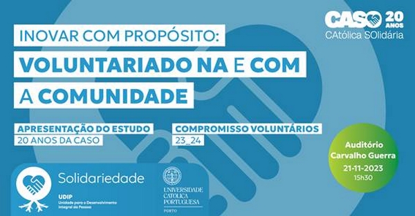 A Conferência CASO – Inovar com propósito: voluntariado na e com a comunidade realiza-se a 21 de novembro na Universidade Católica Portuguesa no Porto. A entrada é livre, mas se inscrição obrigatória.