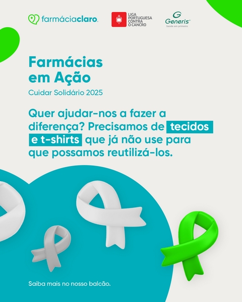 A Liga Portuguesa Contra o Cancro e a rede de Farmácias Claro, com o patrocínio da Generis, levam a cabo mais uma edição do projeto solidário com o objetivo de apoiar os doentes oncológicos que enfrentam os vários desafios da doença e do tratamento.