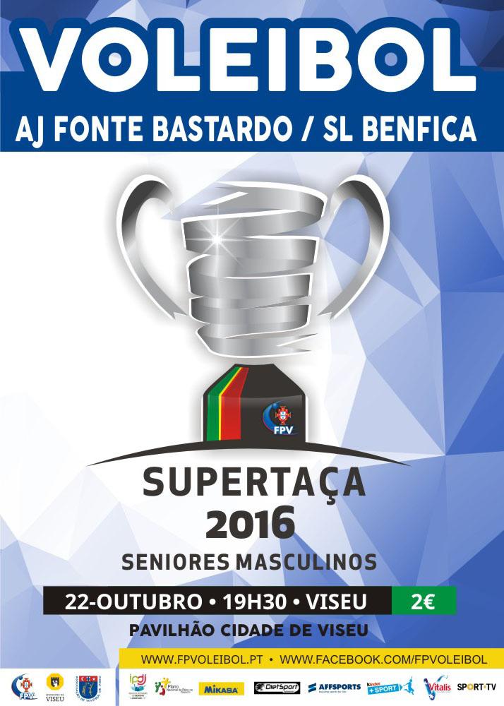 A Supertaça de masculinos 2016, que coloca frente a frente a Associação de Jovens da Fonte do Bastardo, campeão nacional, e o Sport Lisboa e Benfica, vencedor da Taça de Portugal e da Supertaça em 2015/2016, disputa-se às 19h30 do dia 22 de Outubro (sábado), no Pavilhão Cidade de Viseu, em Viseu.