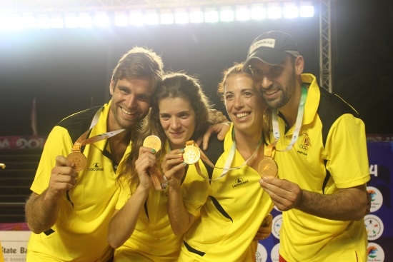 As duplas portuguesas José Pedrosa / Pedro Rosas e Ana Freches / Juliana Antunes Rosas (na foto) conquistaram ontem, respectivamente, as medalhas de ouro nos torneios de masculinos e de femininos dos III Jogos da Lusofonia, a decorrerem até 29 do mês corrente em Goa, na Índia.