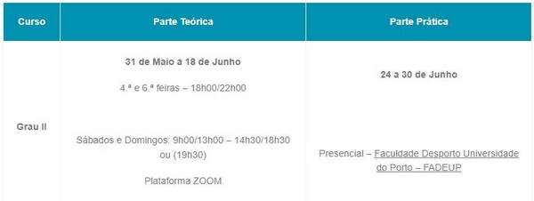 O Departamento de Formação da FPV comunicou ainda que irá abrir inscrições para um segundo Curso de Treinadores de Grau I (CTGI), este a realizar no mês de Setembro.