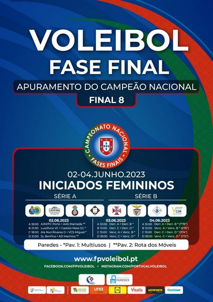 O Apuramento do Campeão Nacional – Fase Final do Campeonato Nacional de Iniciados Femininos, disputado por oito equipas, realiza-se no próximo fim-de-semana (2 a 4 de Junho) no Pavilhão Multiusos e no Pavilhão Rota dos Móveis, em Paredes, sendo organizado pela Federação Portuguesa de Voleibol com o apoio da Câmara Municipal de Paredes.