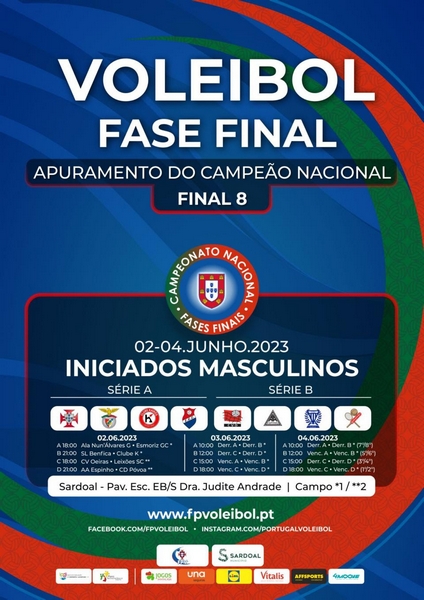 A Fase Final do Campeonato Nacional de Iniciados Masculinos – Apuramento do Campeão Nacional, disputada por oito equipas, realiza-se no próximo fim-de-semana (2 a 4 de Junho) no Pavilhão da Escola Básica e Secundária Dra. Judite Andrade, na vila de Sardoal, em Santarém, sendo organizado pela Federação Portuguesa de Voleibol com o apoio do município de Sardoal.