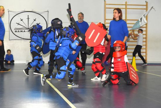 O primeiro é o Francisco de oito anos, aluno da Sala de Armas de Algés, na disciplina de Gladiadores. Está ainda há pouco tempo na disciplina. Nunca participou em provas, estava um pouco nervoso pois este dia foi a sua estreia na competição.