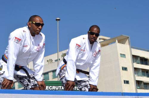No palco instalado frente ao areal as movimentações coreográficas eram constantes entre os sete professores da modalidade em que o próprio Nuno Delgado deu o exemplo familiar ao dividir o palco com o seu pai Joaquim Delgado de visita ao nosso país .