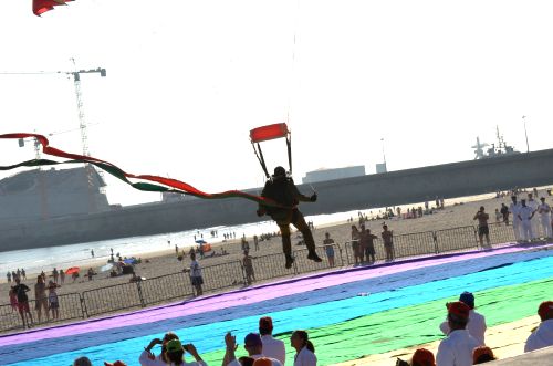 Uma outra novidade foi o voo rasante sobre a praia do avião que transportou os "Falcões Negros" que "aterraram" ao som do " We Are The Champions", dos Queen.