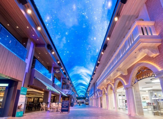 O entretenimento é 24h/dia para todos nos mais variados espaços do navio, não se ficando somente pelo teatro, passa pelo Carroucel Lounge, e também pela galeria principal que sendo construída com a tecnologia Led pode proporcionar vários espectáculos temáticos.