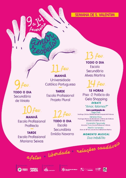O Município de Viseu, em colaboração com a Adamastor – Associação Cultural, promove a campanha de sensibilização “Amar é Respeitar” - Afetos, liberdade e relações saudáveis, integrada na efeméride do Dia de São Valentim.