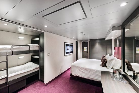 Ao longo das 2.244 cabines para os seus passageiros, há uma oferta muito diversificada para os vários gostos. No nosso álbum fotográfico temos um camarote para duas pessoas, tamanho base e com vista para o mar.