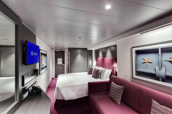 No alojamento a oferta é de 2 Royal Suites 75 Deluxe Suites, 2 Wellness Deluxe Suites, 10 Aurea Suites, 1.274 Camarotes, 136 Ocean View (com janela para o mar), 15 Suites interiores, 8 Suites em Duplex, 667 Camarotes Interiores, 85 Super Family Cabins (com capacidade para cerca de 9 pessoas). o MSC Yatch Club dispõe de 95 Suites, totalizando 2.244 espaços de conforto privados.