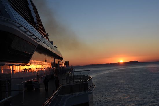 Embora seja tradição em qualquer navio do género , fazer o habitual e estridente apito de saudação e adeus ao sair do porto que o acolheu , nada disto aconteceu , mas em sua substituição , emitiu pelos seus potentes sistemas de som uma das mais belas canções de sempre, o tema " Time to Say Goodbye " (1997) magistralmente interpretada por Sarah Brightman & Andrea Bocelli. A aproximação « Navio--Tripulação-- Passageiros » estava feita. E ainda só agora o passeio começava !